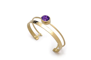 This glittering 18k gold cuff bracelet is a joy to wear - the ultimate example of high quality, luxury fine jewelry! This solid 18k gold bracelet features two bands and a large sparkling gemstone for a piece that catches the light - and is sure to catch your eye!