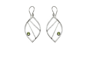 These leaf earrings are handcrafted in sterling silver and measure 1 1/8" wide and 2 1/2" long, including the french wire hook. Select your favorite of four gemstone choices from the dropdown when purchasing.