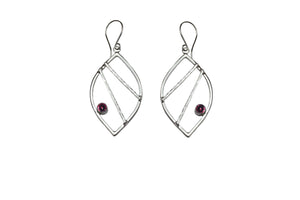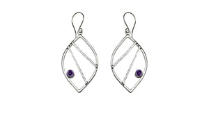 Nature-inspired jewelry can still be simple and modern, as proven by these sterling silver leaf earrings with crossbar and gemstone. This pair of leaf shaped statement earrings feature two hammered crossbars for a contrasting texture, and a 5mm gemstone at the bottom of the leaf shape.
