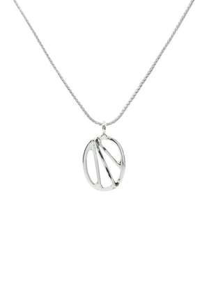 The small pendant is great for layering. The pendant is high polished for lots of glossy shine, and the top crossbar that lies across the oval is hammered for some texture and depth. The pendant is suspended on a simple rounded box chain.