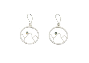 I've hand drawn the mountain range in sterling silver wire for these limited edition earrings, so each one is truly unique. Each earring is set with a beautiful 3mm Montana sapphire in a 14k gold setting for a beautiful combination of colors and textures.