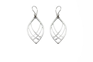 These woven silver earrings are handcrafted in sterling silver. Each earring measures 1 1/8" wide and 2 1/2" long, including the french wire hook.