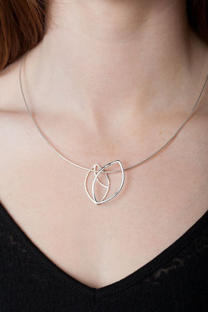 Thissterling silver leaf pendant is a truly unique piece. It is three dimensional and reversible, offering versatility in how the necklace is worn. Handmade in sterling silver wire, thisleaf necklace is a great addition to anyminimalist jewelry collection - especially for nature lovers!
