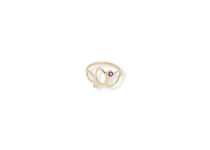 Handmade ring with 3 leaves crafted in 14k yellow gold. Ring can be set with either a 3mm Montana Sapphire or a 3mm rhodolite garnet to compliment a 2.3mm reclaimed diamond. Delicate and lightweight it's perfect for every day with its low profile and bezel set stones. Video shows the ring in all 14k gold with a Montana Sapphire.
