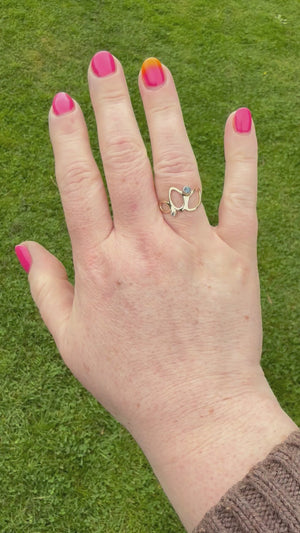 Ring design measures 2.5cm across finger and 1cm at widest point set on a 1.2mm band.