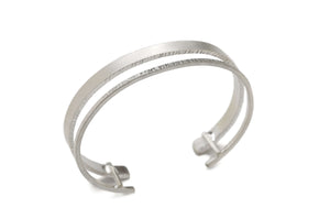 Looking for a minimalist bracelet that still offers some unique interest? Look no further than this hammered sterling silver cuff bracelet! This simple everyday cuff has a satin-finished wide band with a hammered texture on its sides and a thin band that is hammered on the top. The hammered texture is polished to glint from every angle.